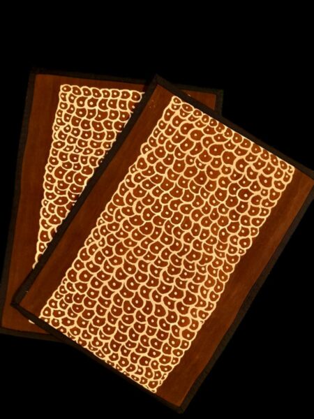 Comme tous nos bogolans, ce lot de 2 sets de table vient de la ville de Ségou et plus précisement de l’école habritée par le conservatoire des techniques de teintures naturelles de la ville Ségou.